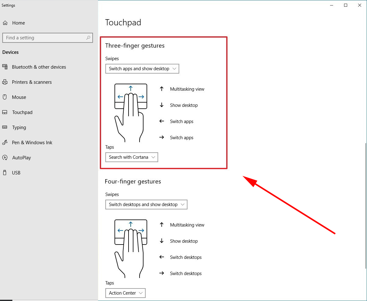 - Nothing: Turns off three-finger gestures on Windows 10.
